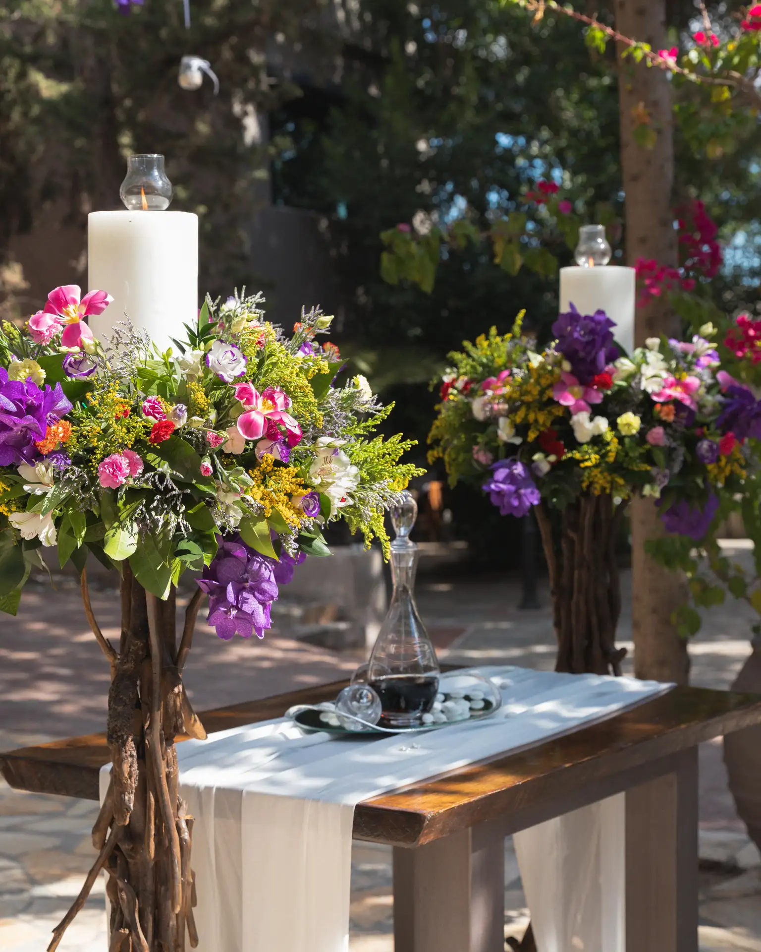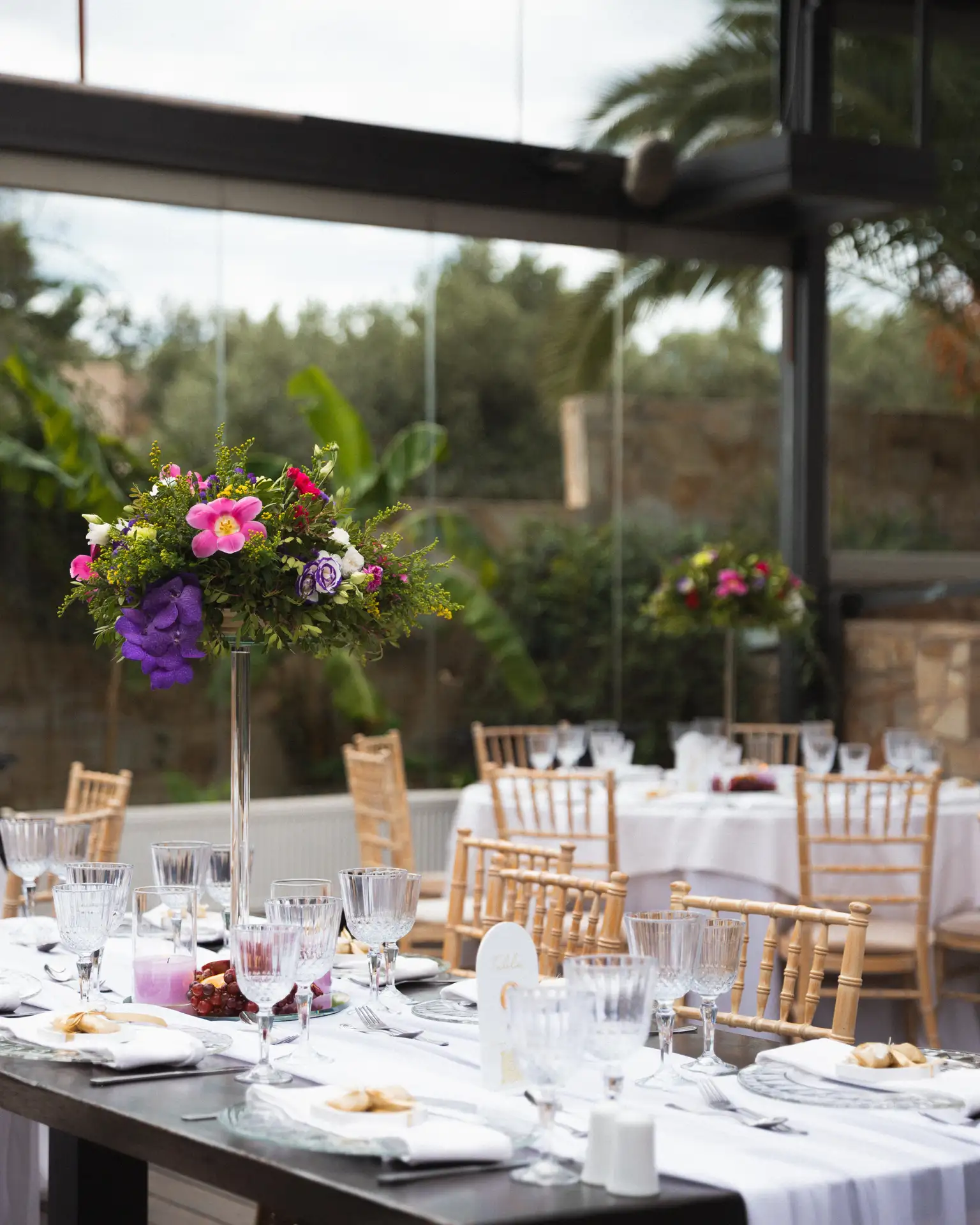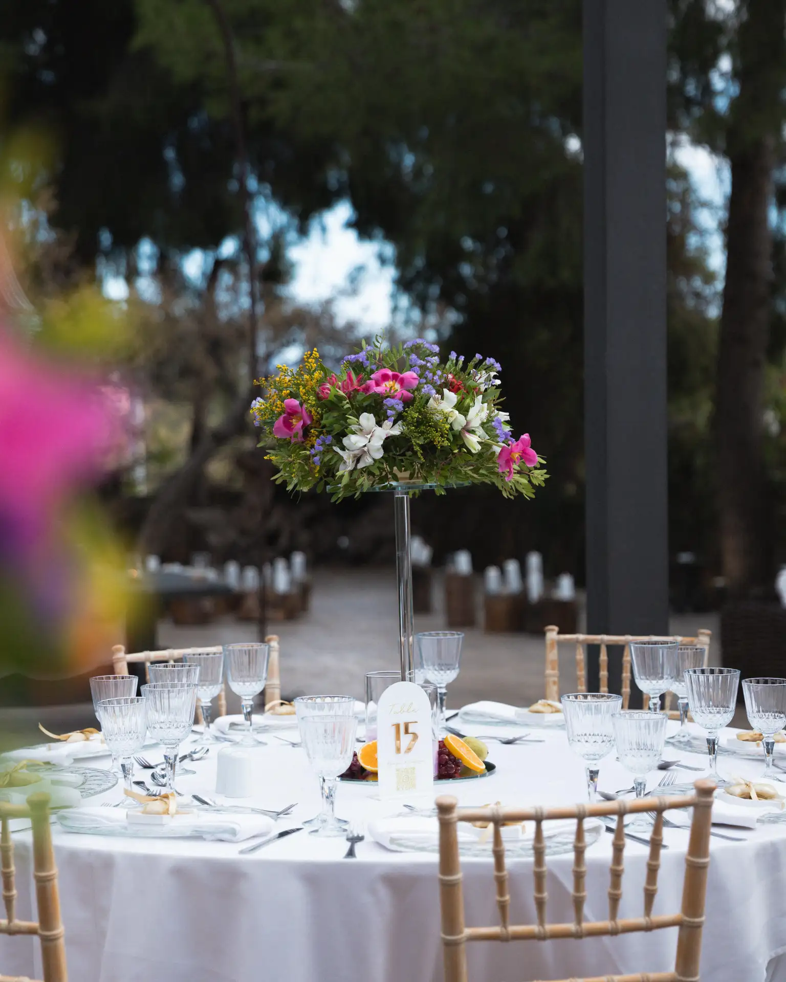 Στις 12/10/2025 η Μάντη και ο Γιάννης γιόρτασαν τον έρωτά τους στο Κτήμα Κλεοπάτρα σε έναν πρωινό φθινοπωρινό γάμο γεμάτο φως και κομψότητα. Η οργάνωση και διακόσμηση από την ομάδα συνδύασε μωβ ορχιδέες, φούξια τουλίπες, λευκές και κίτρινες πινελιές, φρούτα σε γυάλινες βάσεις centrepieces και παστέλ κεριά — δύο από τις μεγαλύτερες τάσεις στη σύγχρονη διακόσμηση γάμου.