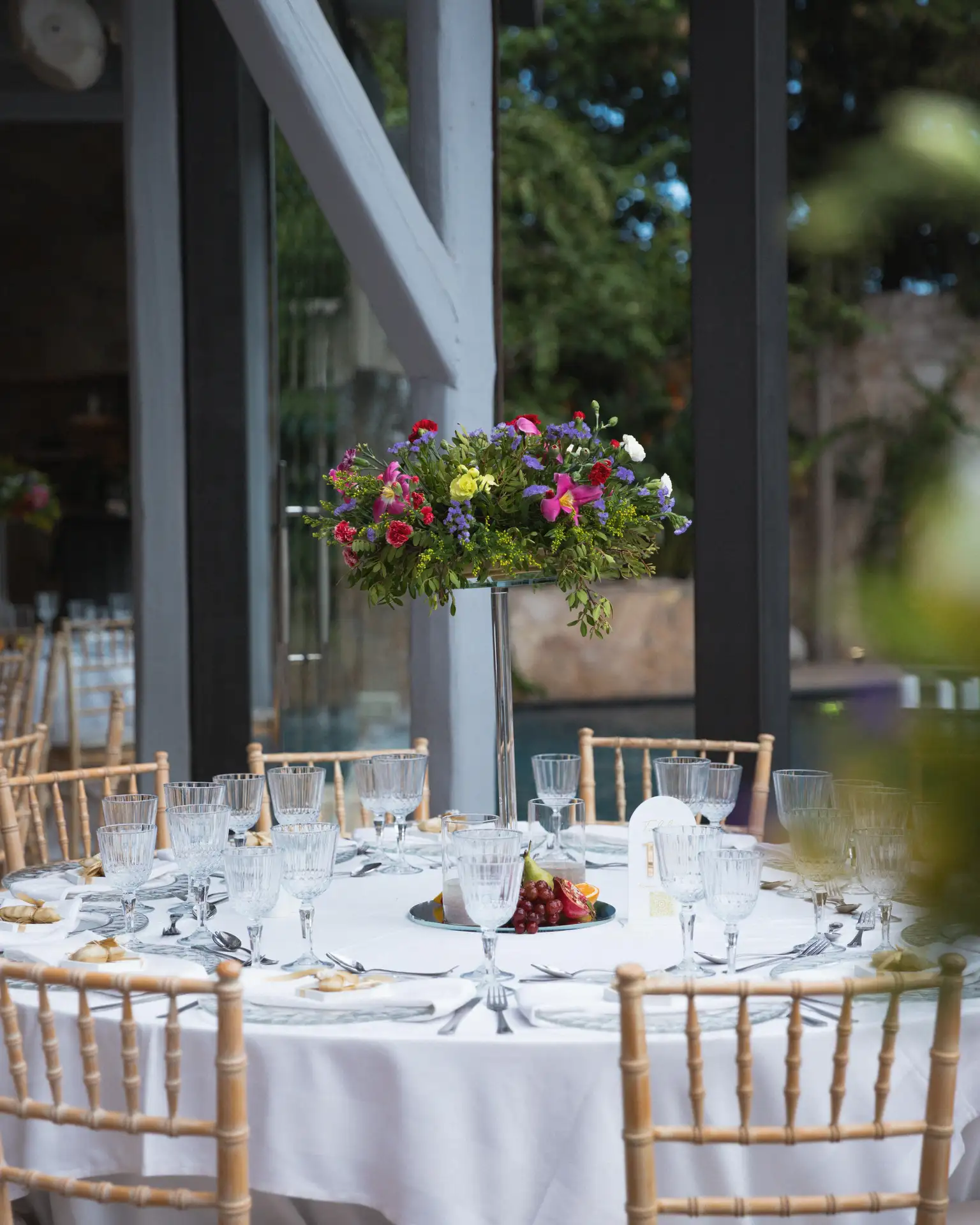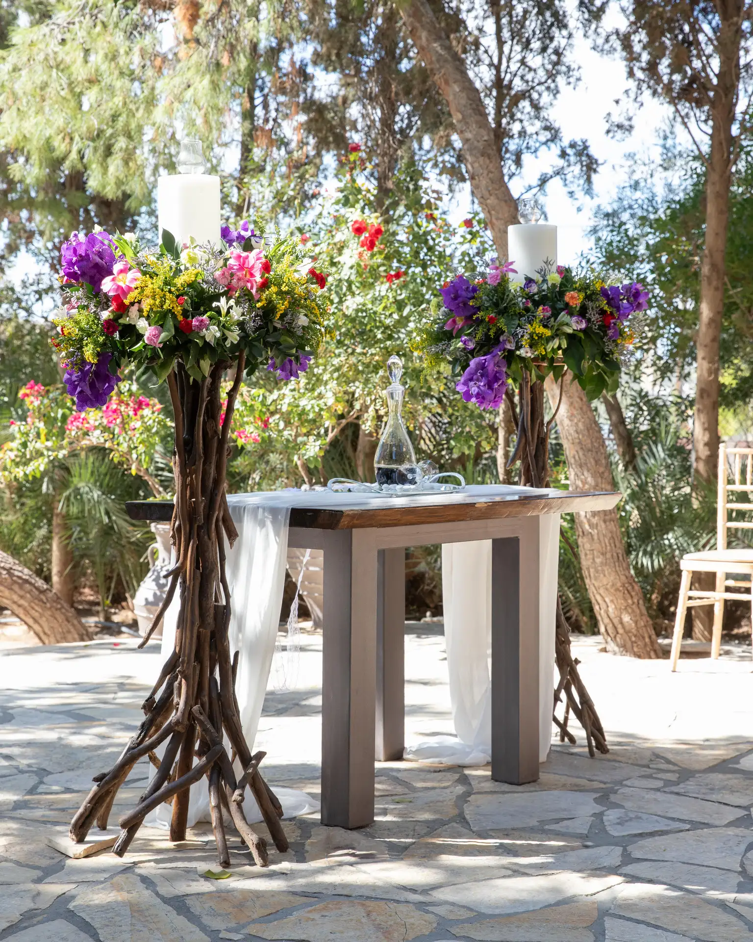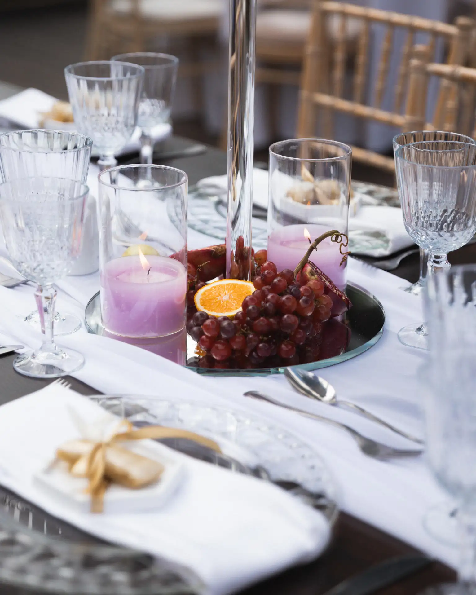 Στις 12/10/2025 η Μάντη και ο Γιάννης γιόρτασαν τον έρωτά τους στο Κτήμα Κλεοπάτρα σε έναν πρωινό φθινοπωρινό γάμο γεμάτο φως και κομψότητα. Η οργάνωση και διακόσμηση από την ομάδα συνδύασε μωβ ορχιδέες, φούξια τουλίπες, λευκές και κίτρινες πινελιές, φρούτα σε γυάλινες βάσεις centrepieces και παστέλ κεριά — δύο από τις μεγαλύτερες τάσεις στη σύγχρονη διακόσμηση γάμου.