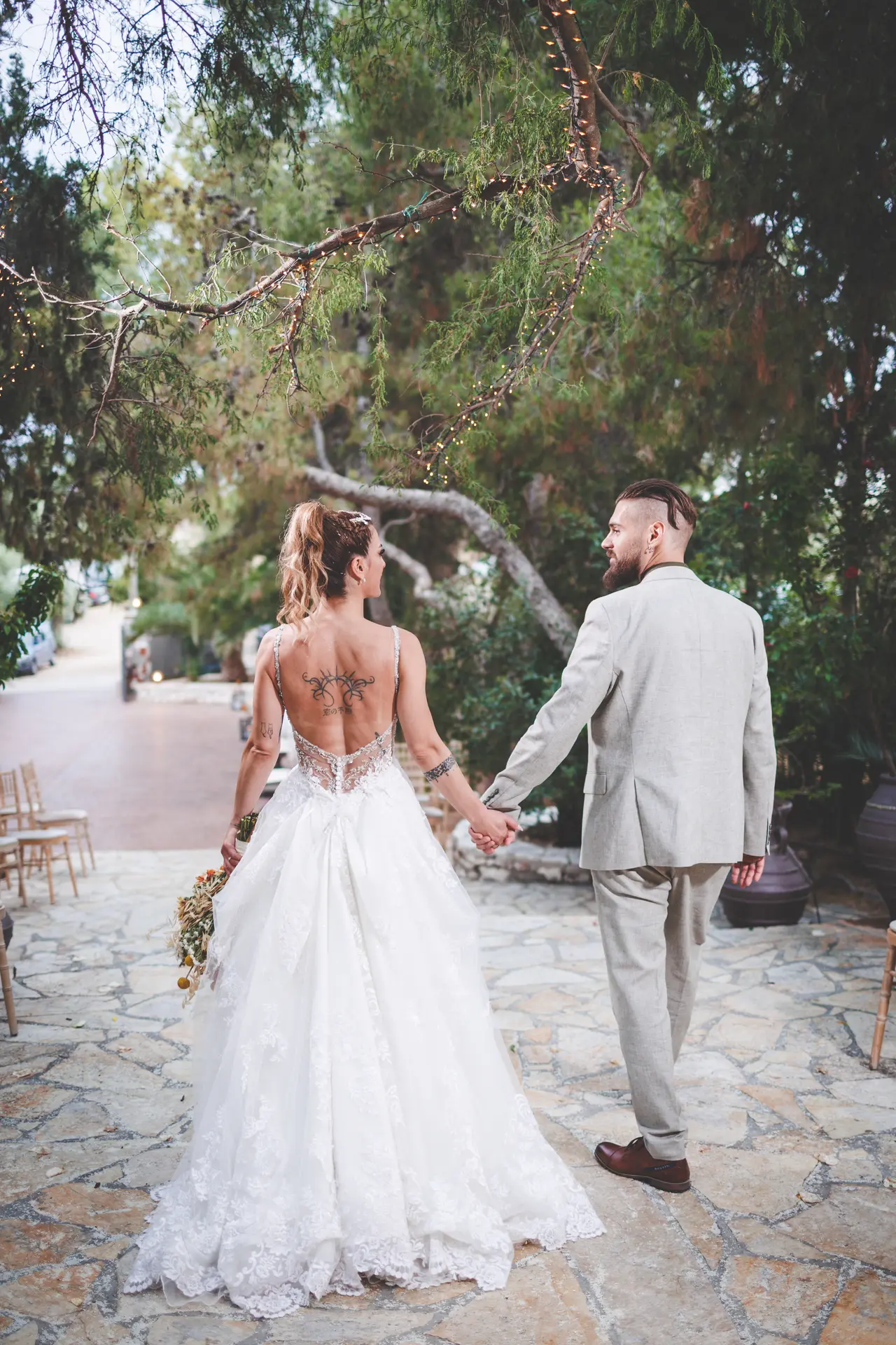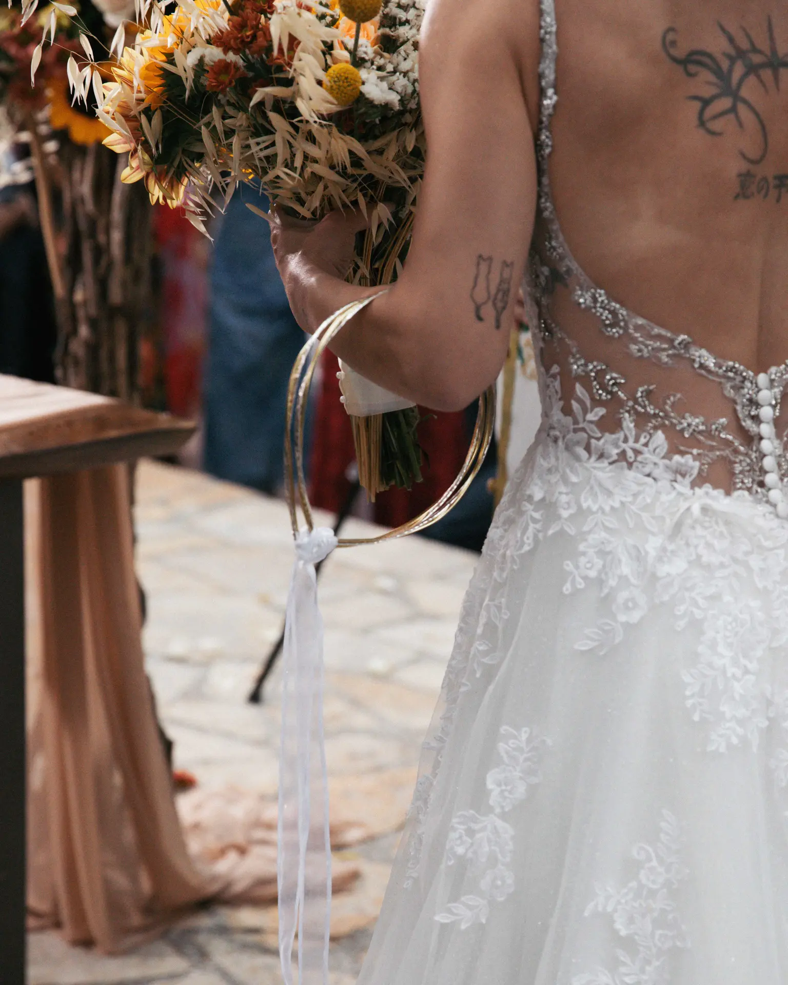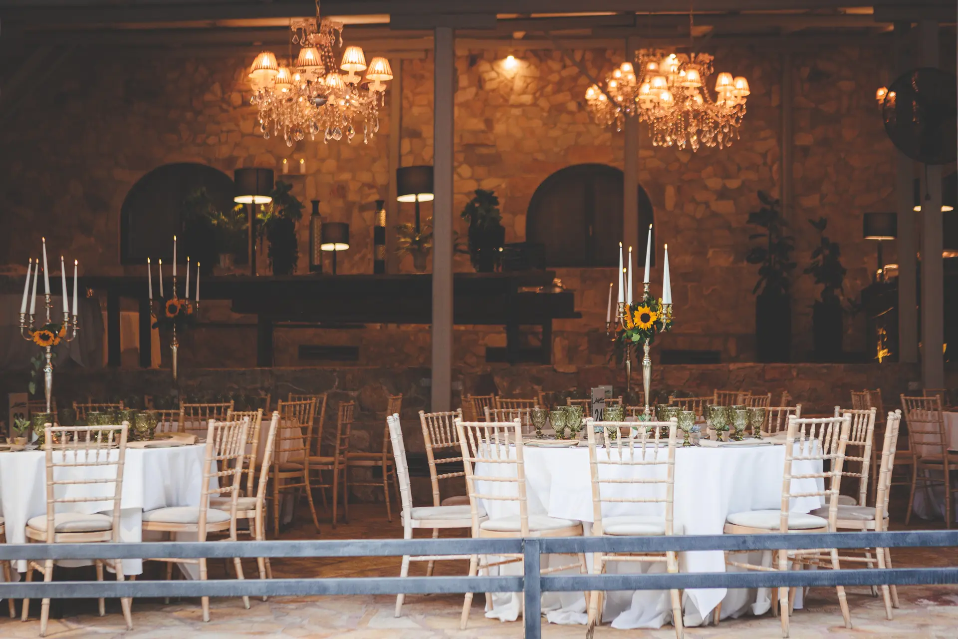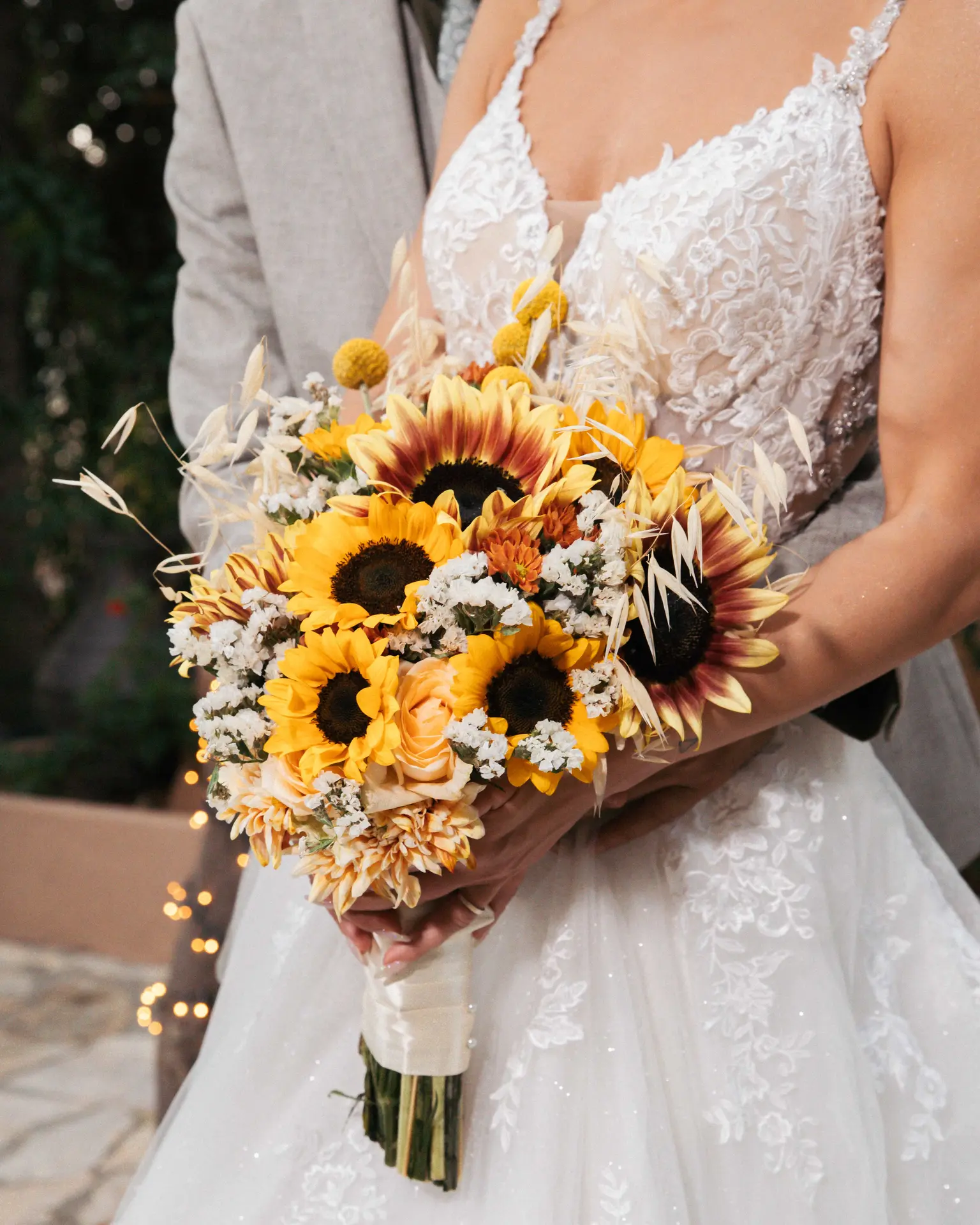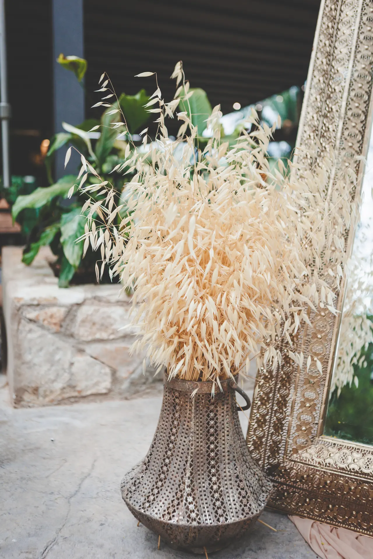 Η δημιουργική ομάδα του Kleopatra n’joy Events μετέτρεψε το κτήμα σε έναν καλοκαιρινό κήπο γεμάτο χρώμα, όπου τα ηλιοτρόπια συνδυάστηκαν με φυσικά υλικά και λιτές γραμμές, δημιουργώντας μια αισθητική που ανέδειξε την ομορφιά της απλότητας και τη δύναμη της λεπτομέρειας. Από τον χώρο της τελετής έως τη δεξίωση, κάθε γωνιά ακτινοβολούσε θετική ενέργεια και φυσική κομψότητα.
