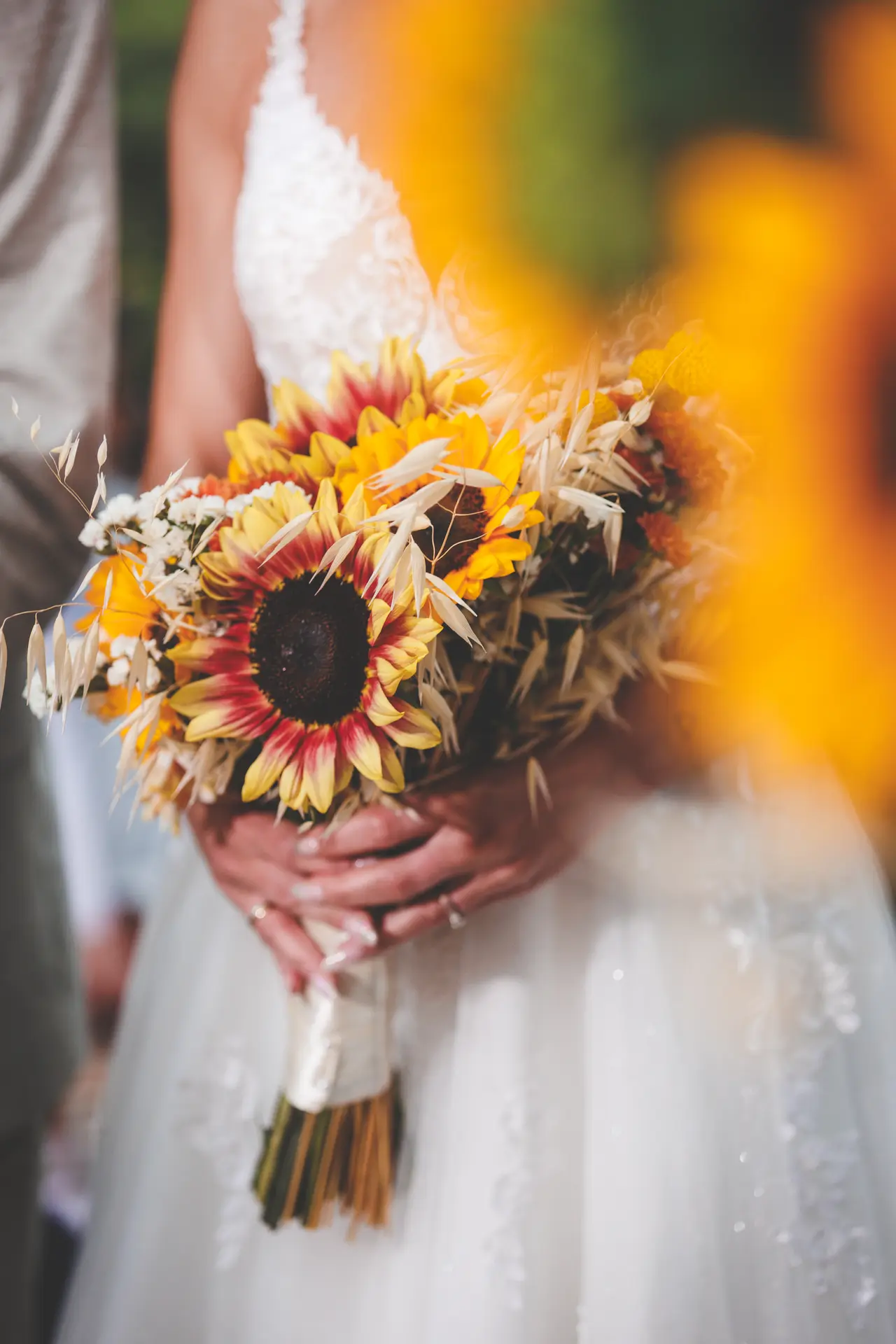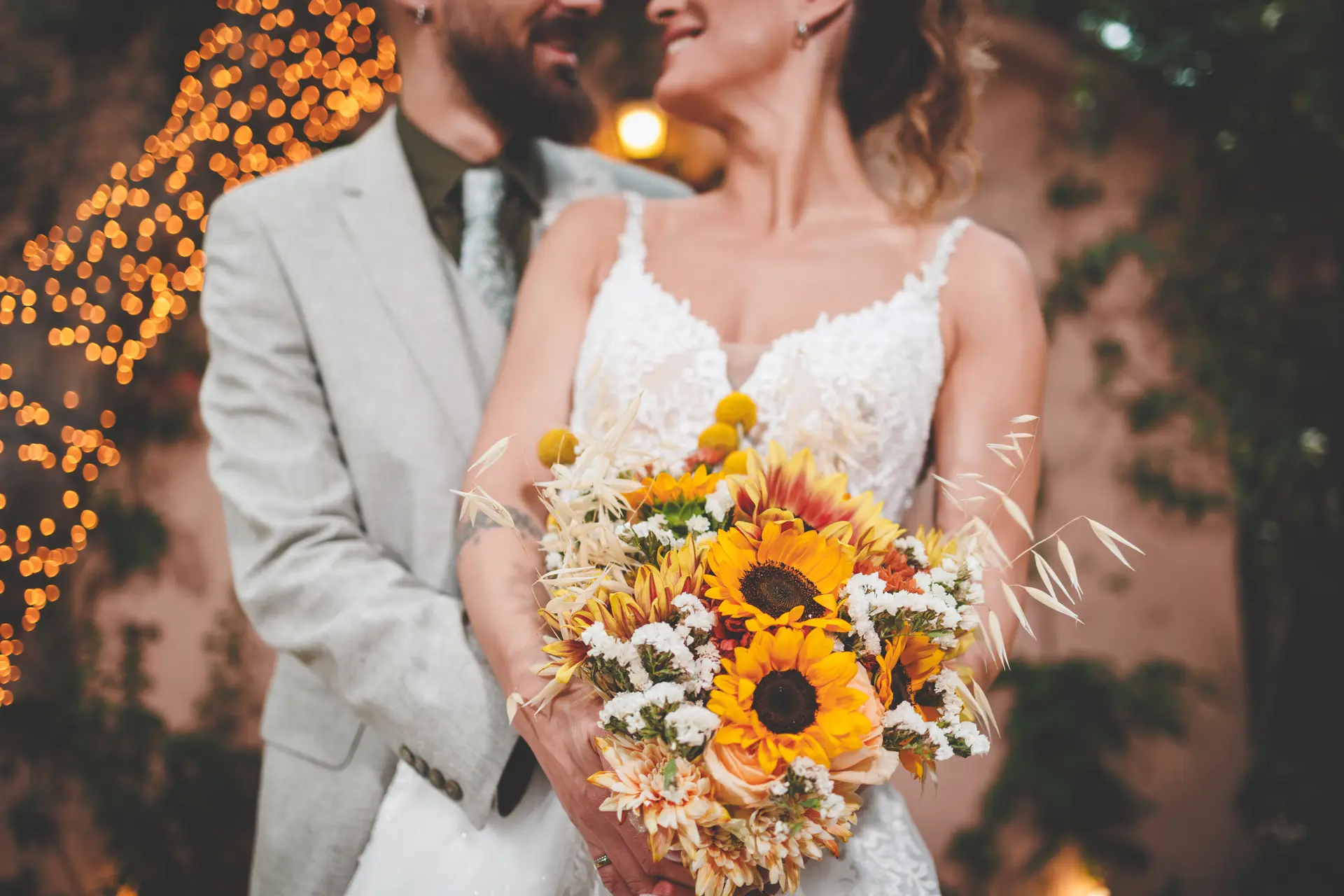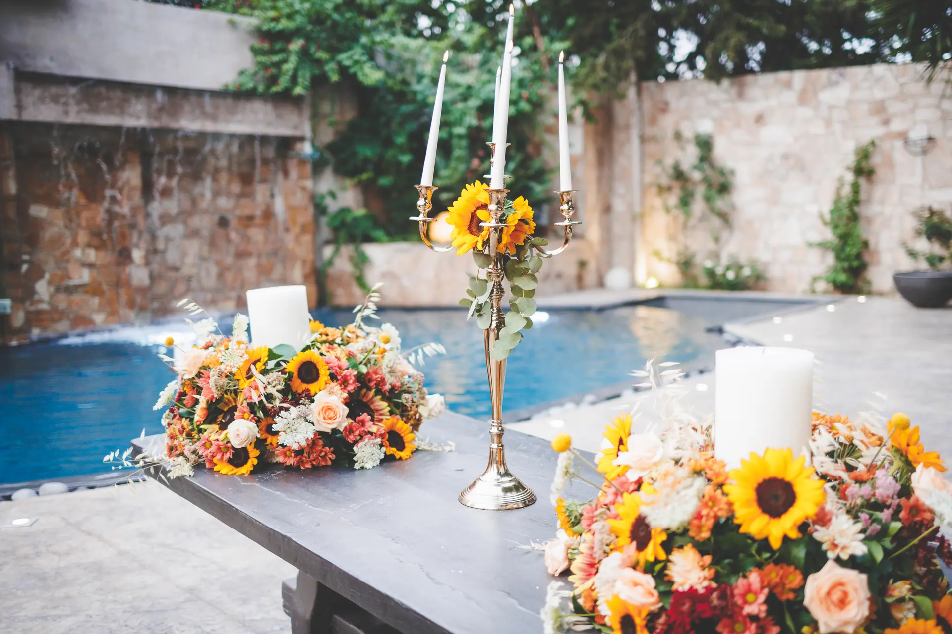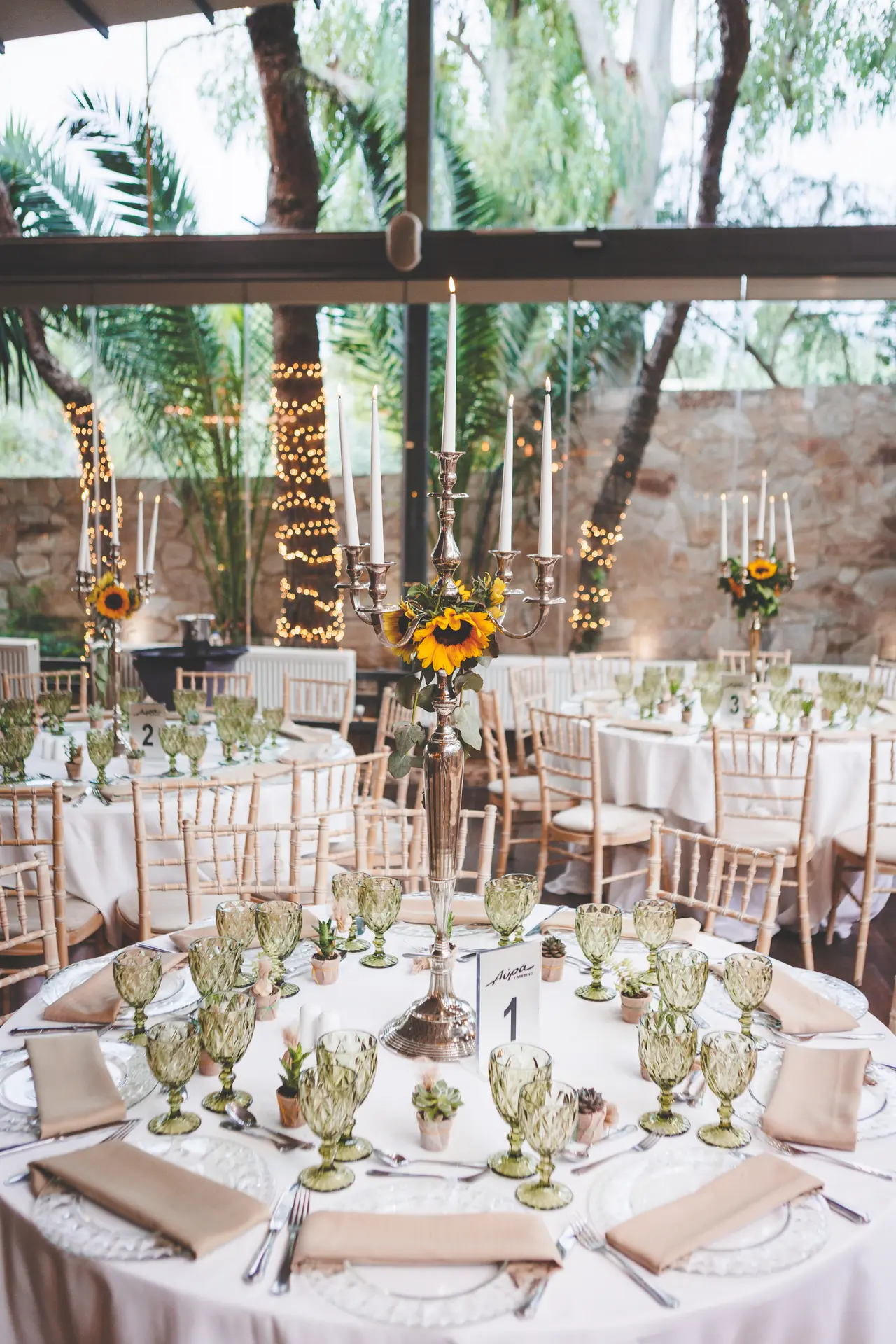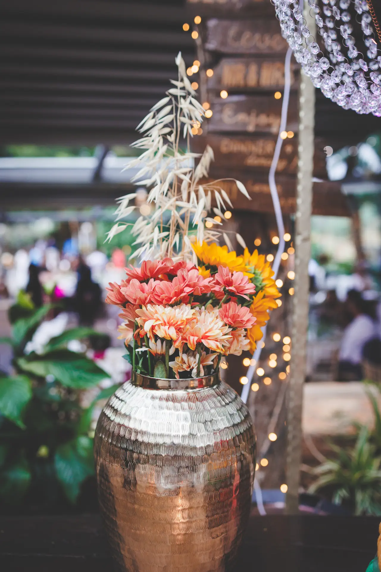 Η δημιουργική ομάδα του Kleopatra n’joy Events μετέτρεψε το κτήμα σε έναν καλοκαιρινό κήπο γεμάτο χρώμα, όπου τα ηλιοτρόπια συνδυάστηκαν με φυσικά υλικά και λιτές γραμμές, δημιουργώντας μια αισθητική που ανέδειξε την ομορφιά της απλότητας και τη δύναμη της λεπτομέρειας. Από τον χώρο της τελετής έως τη δεξίωση, κάθε γωνιά ακτινοβολούσε θετική ενέργεια και φυσική κομψότητα.