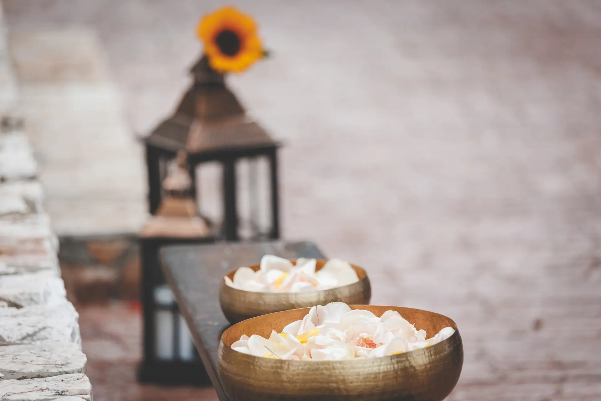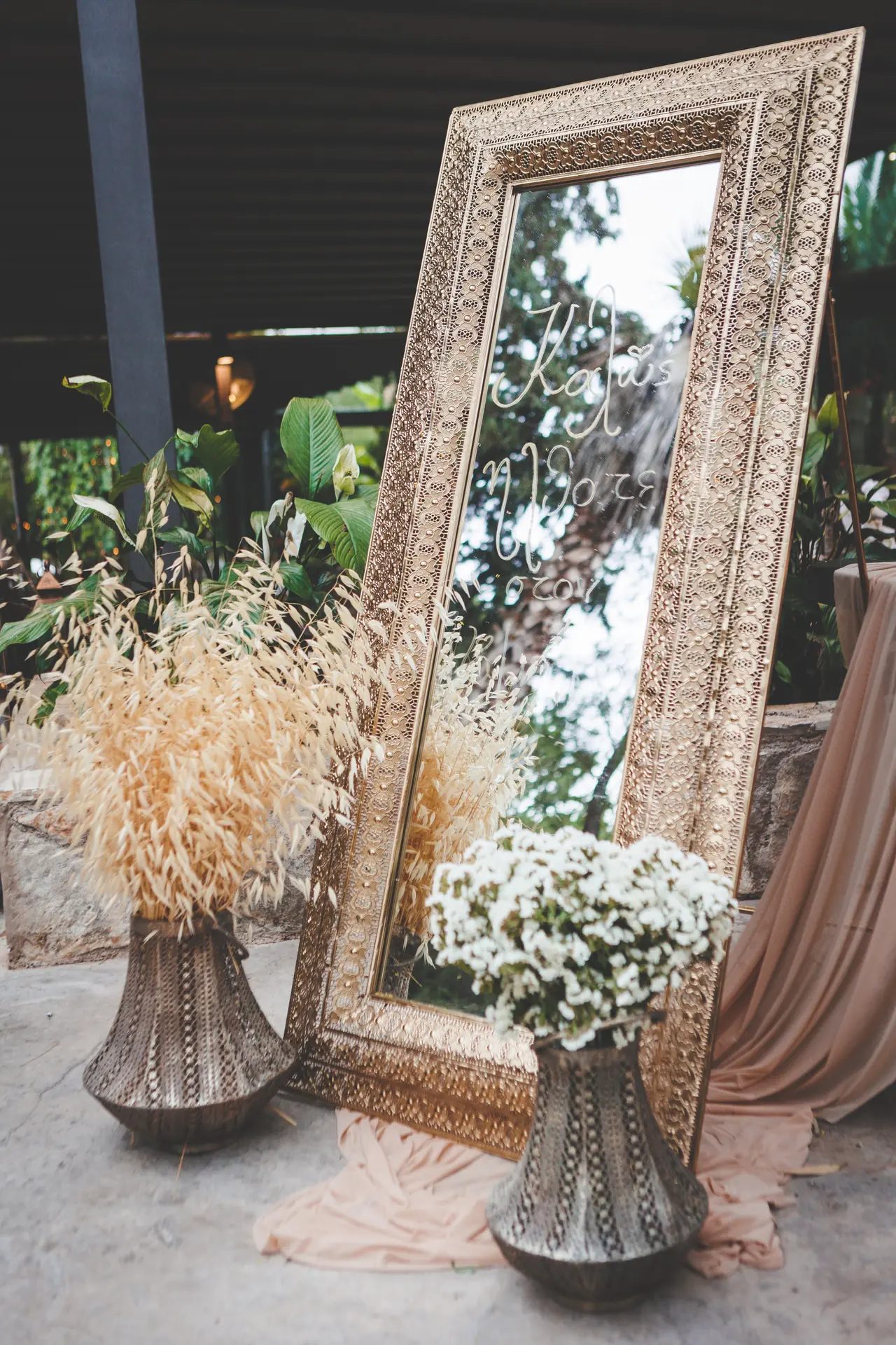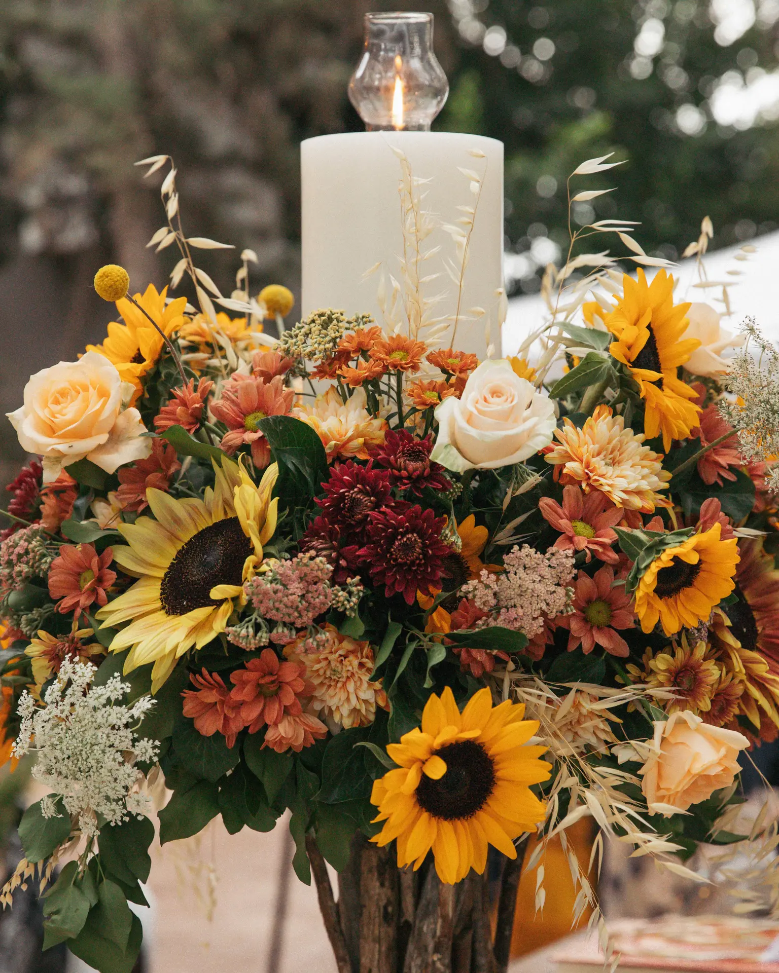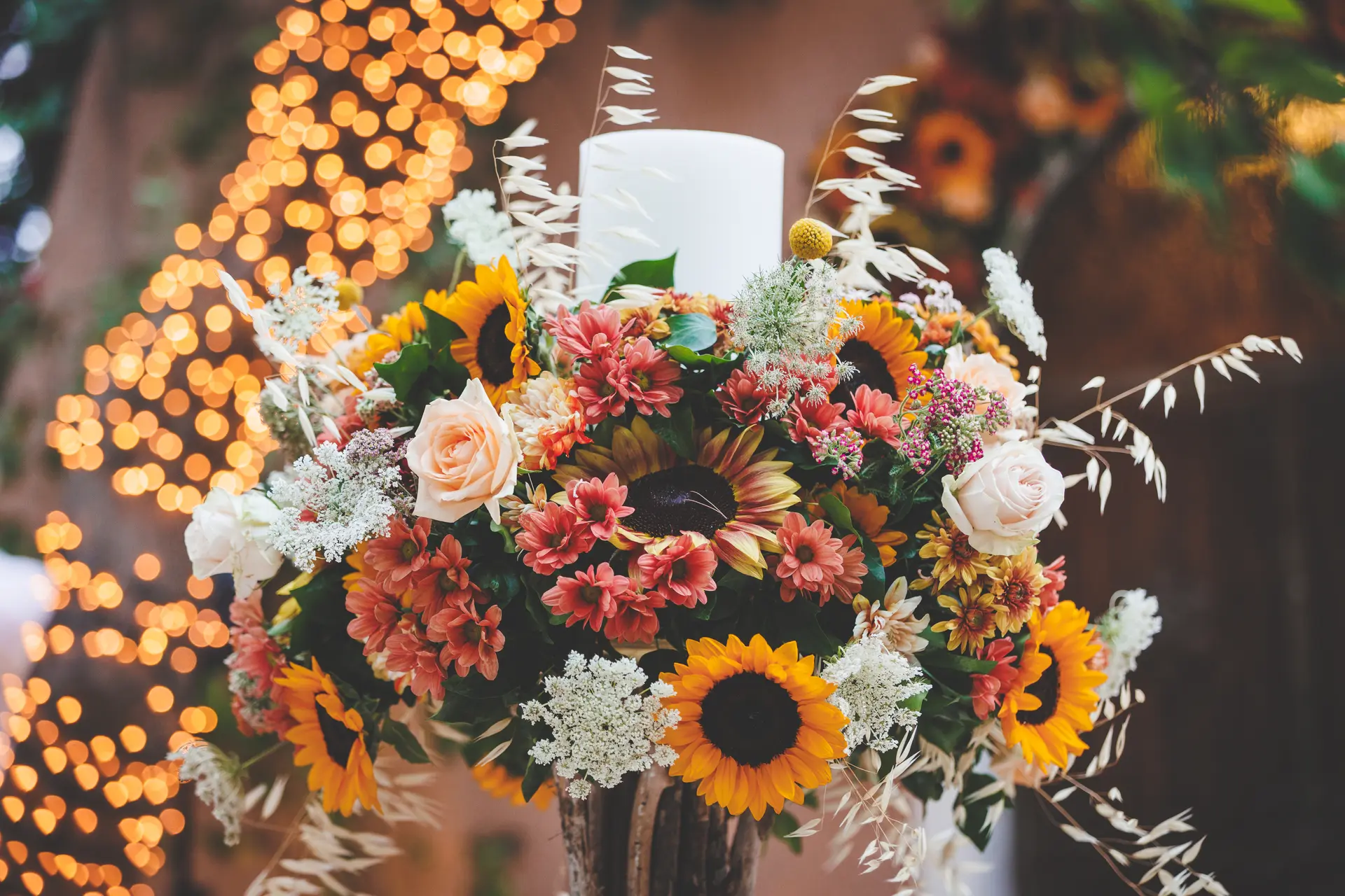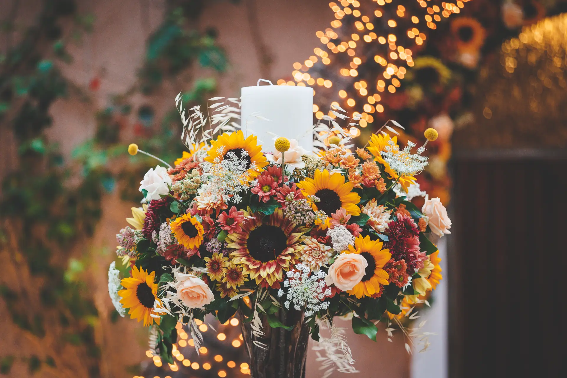Η δημιουργική ομάδα του Kleopatra n’joy Events μετέτρεψε το κτήμα σε έναν καλοκαιρινό κήπο γεμάτο χρώμα, όπου τα ηλιοτρόπια συνδυάστηκαν με φυσικά υλικά και λιτές γραμμές, δημιουργώντας μια αισθητική που ανέδειξε την ομορφιά της απλότητας και τη δύναμη της λεπτομέρειας. Από τον χώρο της τελετής έως τη δεξίωση, κάθε γωνιά ακτινοβολούσε θετική ενέργεια και φυσική κομψότητα.