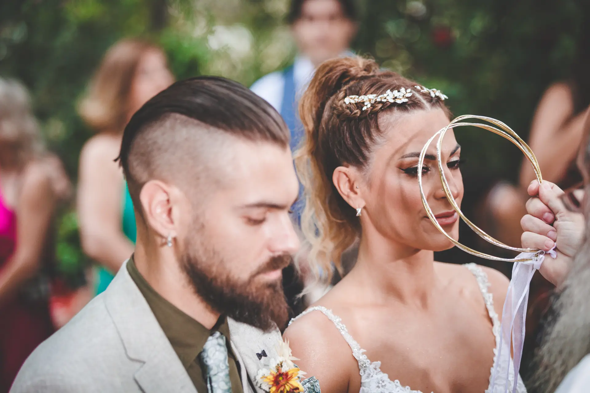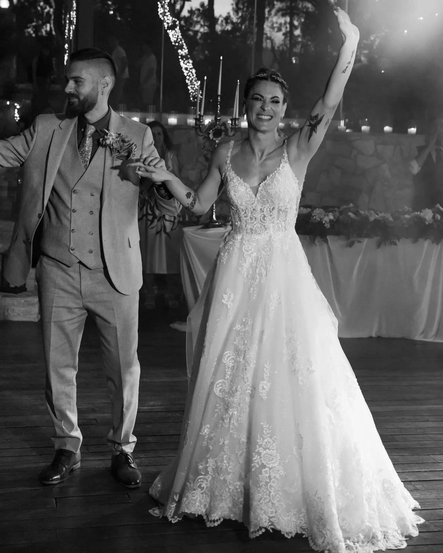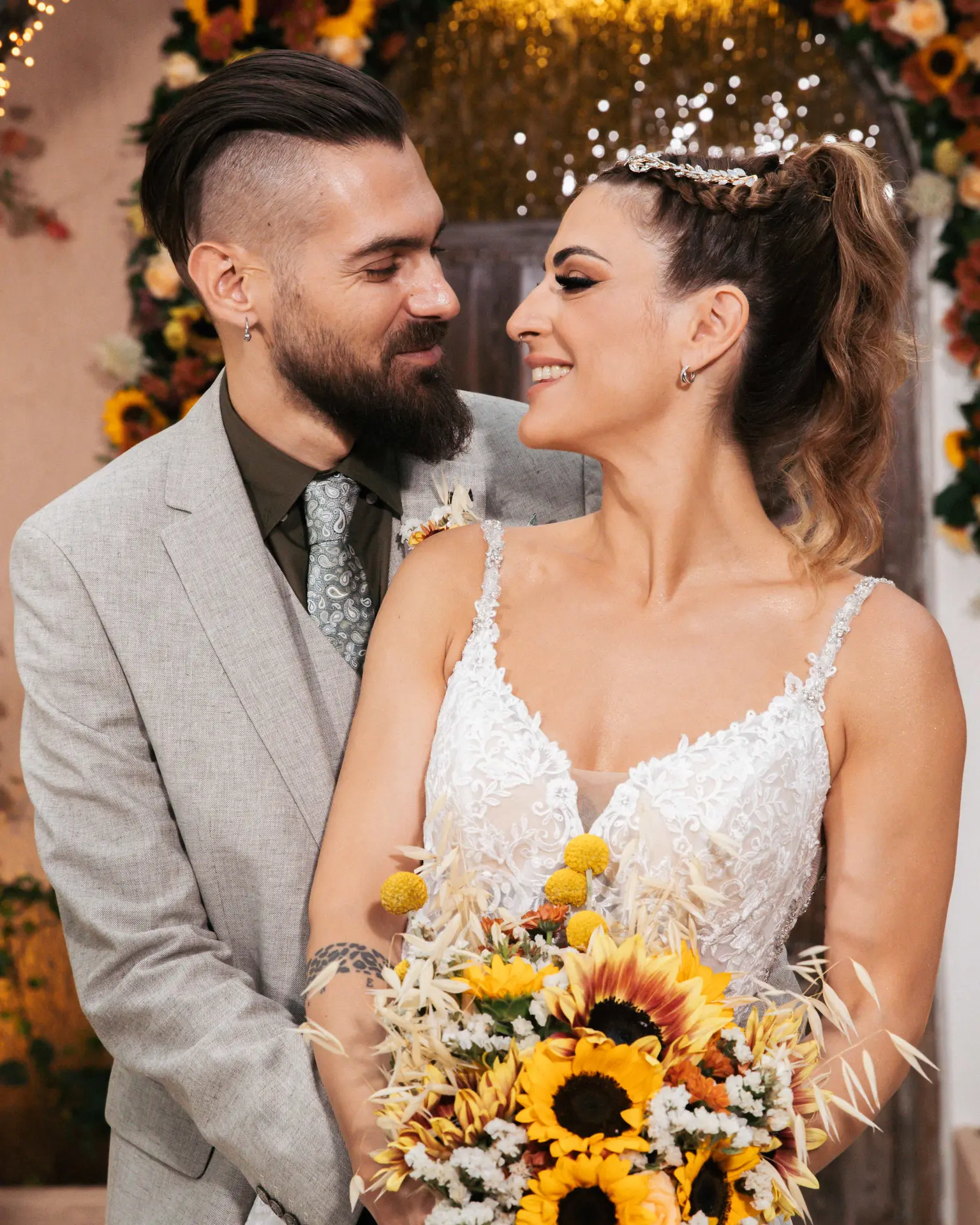 Μπροστά στο γραφικό εκκλησάκι των Αγίων Πέτρου και Παύλου και κάτω από τον λαμπερό καλοκαιρινό ήλιο, η Μυρτώ και ο Παναγιώτης αντάλλαξαν όρκους αιώνιας αγάπης σε ένα σκηνικό πλημμυρισμένο από φως, συναίσθημα και… ηλιοτρόπια. Σε όλο το Κτήμα Κλεοπάτρα, τα φωτεινά αυτά λουλούδια κυριάρχησαν στη διακόσμηση, συμβολίζοντας τη χαρά, τη ζεστασιά και την αισιοδοξία που χαρακτήριζαν κάθε στιγμή της ημέρας.