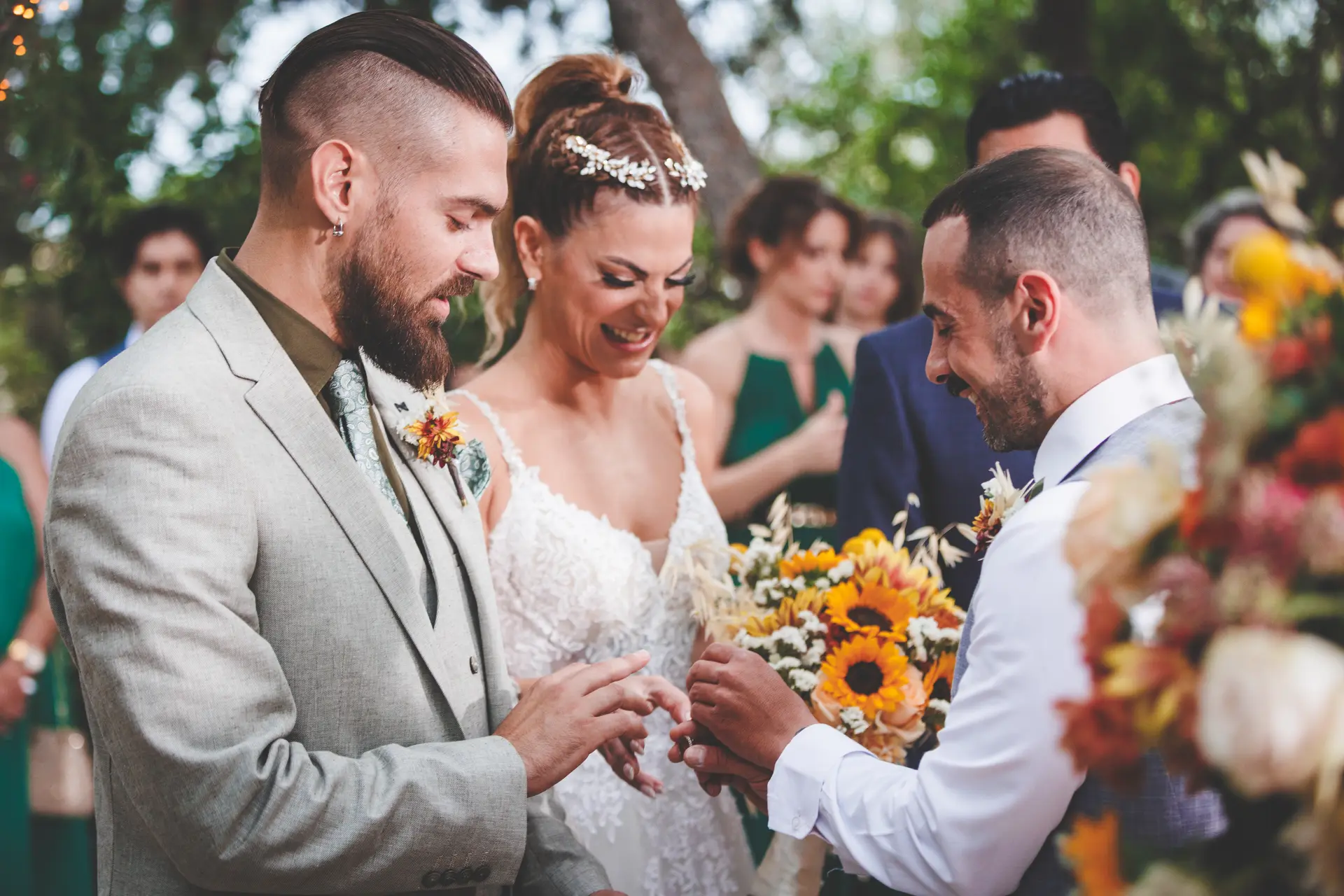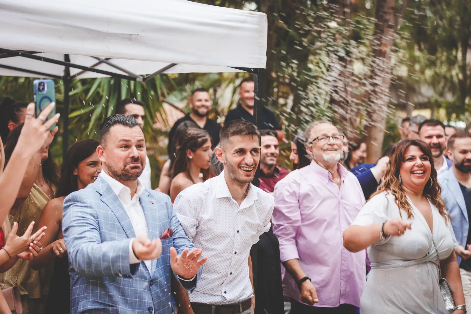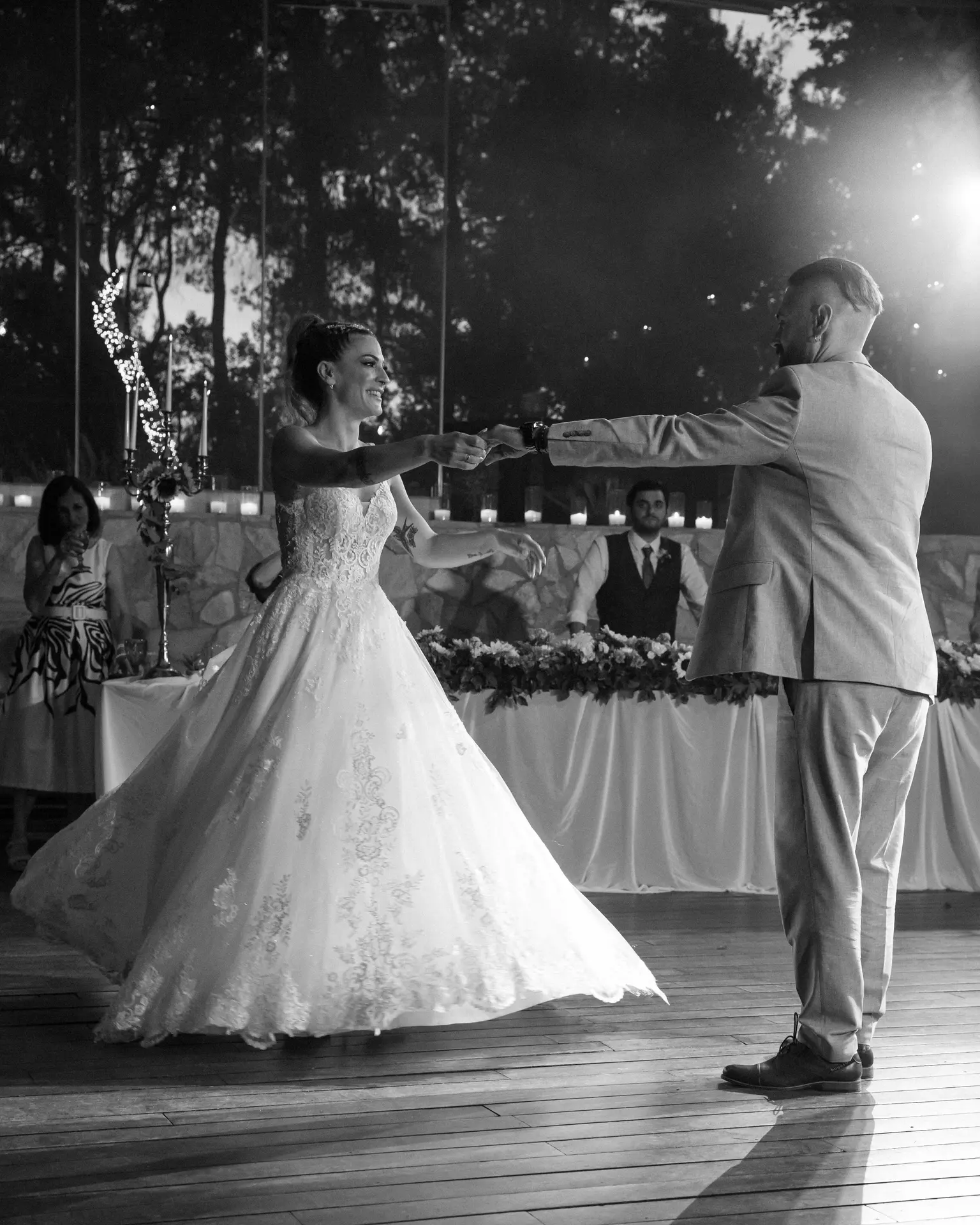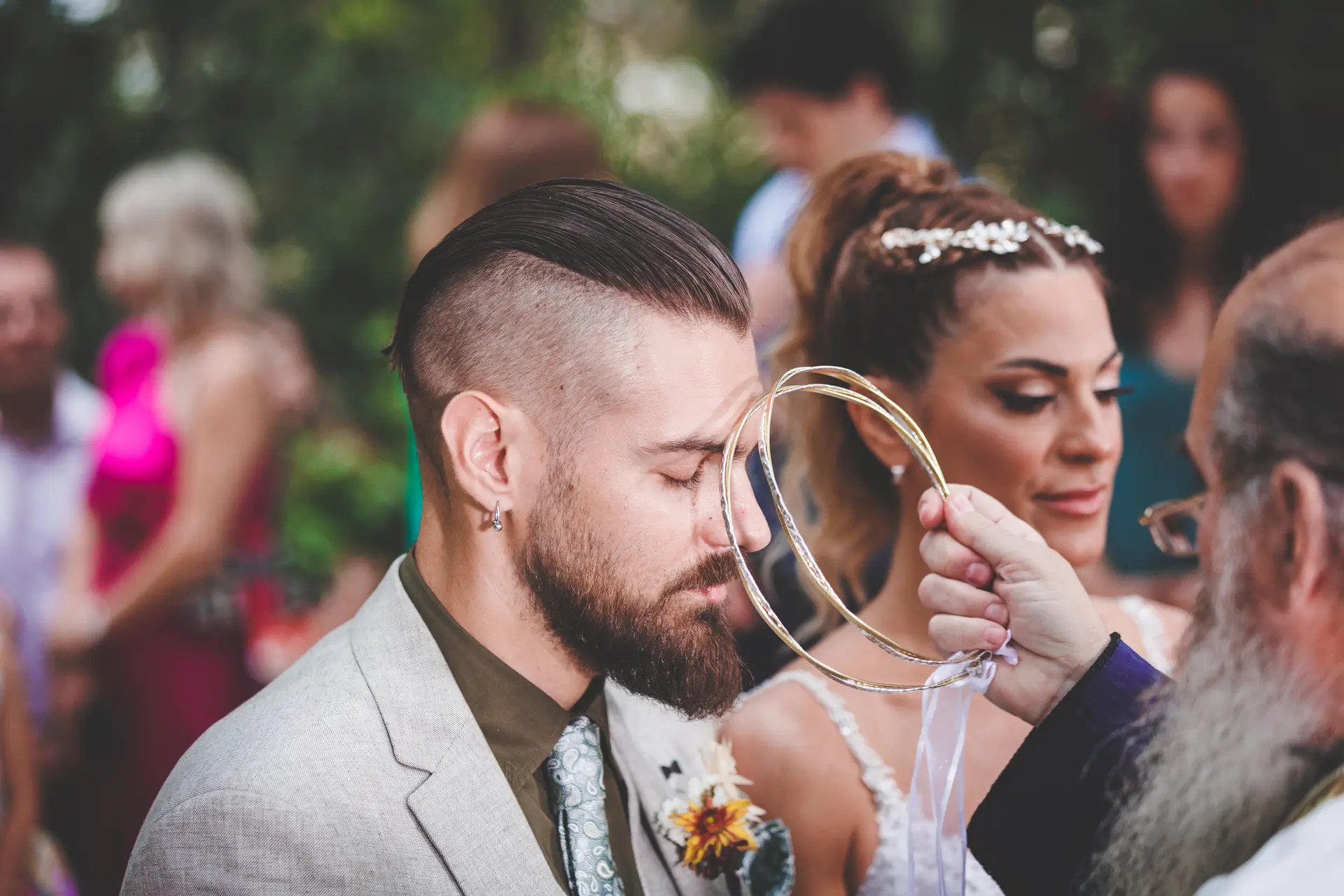 Μπροστά στο γραφικό εκκλησάκι των Αγίων Πέτρου και Παύλου και κάτω από τον λαμπερό καλοκαιρινό ήλιο, η Μυρτώ και ο Παναγιώτης αντάλλαξαν όρκους αιώνιας αγάπης σε ένα σκηνικό πλημμυρισμένο από φως, συναίσθημα και… ηλιοτρόπια. Σε όλο το Κτήμα Κλεοπάτρα, τα φωτεινά αυτά λουλούδια κυριάρχησαν στη διακόσμηση, συμβολίζοντας τη χαρά, τη ζεστασιά και την αισιοδοξία που χαρακτήριζαν κάθε στιγμή της ημέρας.