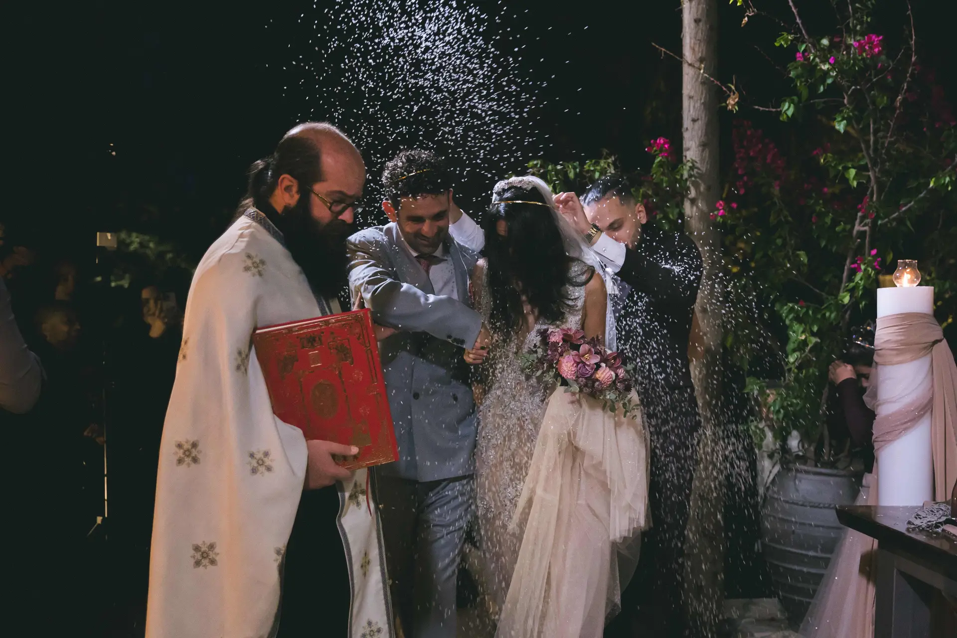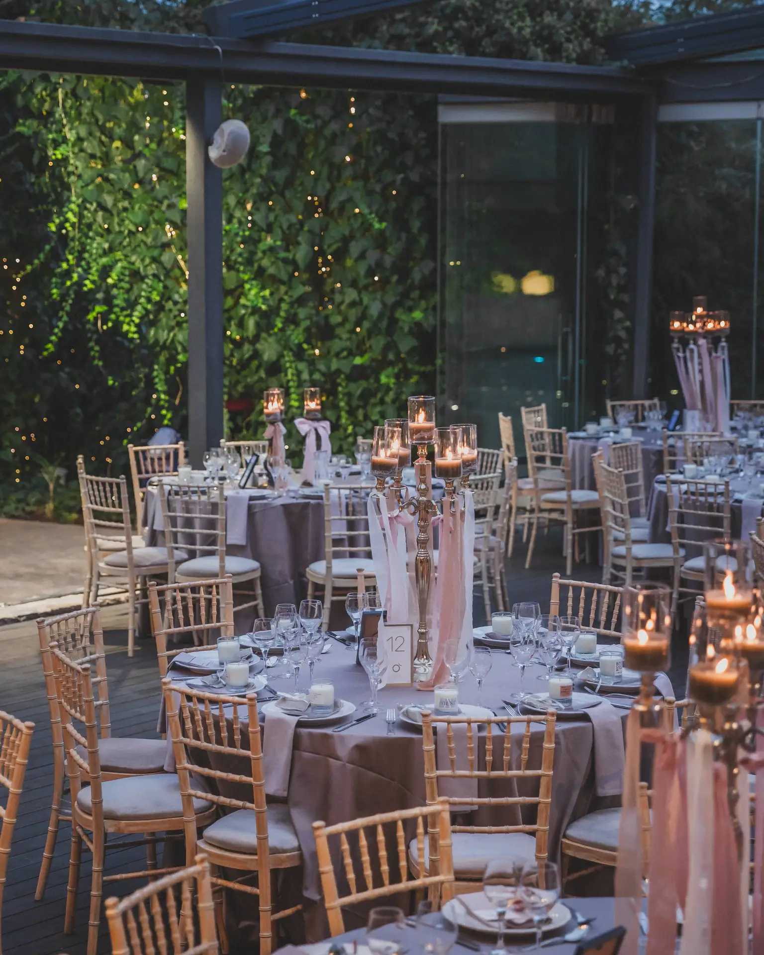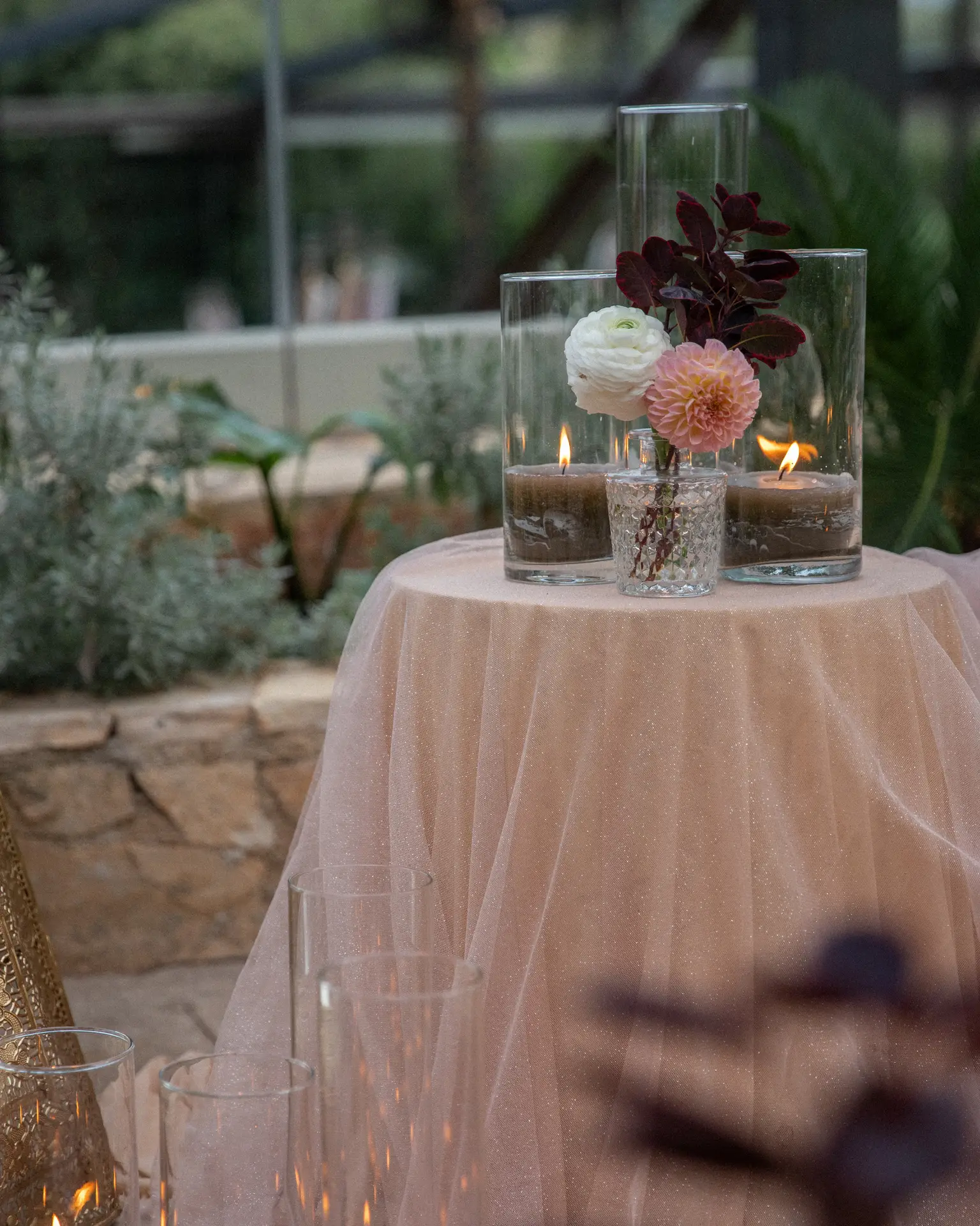 Danae and Konstantinos’ wedding, which took place on November 1st, 2025 at Kleopatra Estate, was a true ode to romance and elegance. A wedding that felt as if it had stepped out of a fairytale, filled with light, textures, and an atmosphere that enchanted every guest.From the very first moment, the eye was drawn to the airy ribbons and flowing fabrics that danced throughout the estate, creating a sense of movement and romantic freedom. In every corner of the venue, countless candles softly illuminated the setting, adding warmth and an absolutely magical ambiance.✨ Fairy lights & natural beautyFairy lights adorned the tree by the chapel as well as the trees around the pool, creating a scene reminiscent of a cinematic love story. The estate’s natural landscape, combined with the lighting, highlighted every part of the venue, transforming it into a bright, romantic haven.As night fell, the space transformed even more, offering an atmosphere perfect for unforgettable photos and beautiful moments with friends and family.🌸 A color palette full of emotionThe color palette selected by Kleopatra n’Joy Events was truly unique and perfectly aligned with the couple’s style: eggplant, pink, and salmon, in a wonderful combination that conveyed romance, freshness, and subtle luxury.The stunning floral arrangements decorated the chapel, the tables, and every detail of the venue, creating a harmonious blend of colors and fragrances that perfectly completed the wedding concept.💖 When details make the differenceEvery element of this wedding was designed with care and love for detail — from the décor to the overall guest experience. The result was a wedding that was not only beautiful, but also emotional, warm, and fully personalized.Working with Kleopatra n’Joy Events ensured that every idea the couple had was brought to life with professionalism, creativity, and high aesthetics.✨ Let’s create your dream wedding togetherIf you are dreaming of a wedding filled with romance, light, elegance, and a unique atmosphere, take inspiration from Danae and Konstantinos’ wedding and let us design your special day together.Because every love story deserves to be told in the most beautiful way. 💖